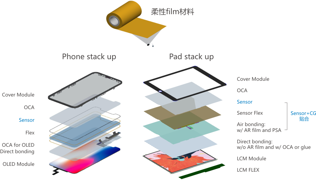 手機全面屏及柔性OLED顯示屏已成為趨勢,搭載OLED顯示屏的薄膜觸控感應器的應用產能會得到釋放。