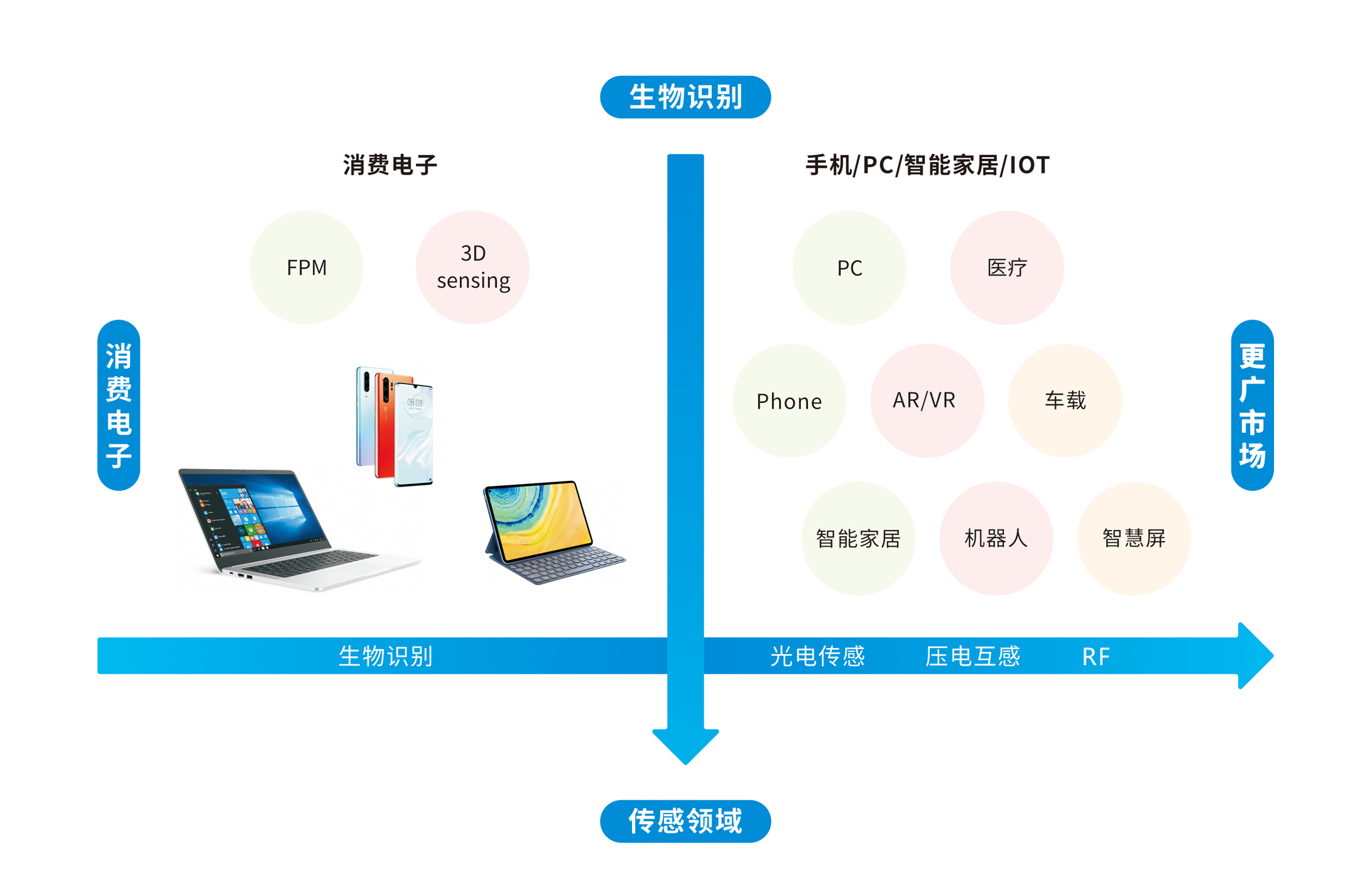 從指紋識別和人臉識別擴展到傳感器領域,產品類別由指紋和3DS向更多傳感器領域發(fā)展,產品領域由消費電子擴展向智能家居、人工智能、智能汽車、醫(yī)療、AR/VR等。